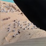 - Landscape with existing and added buildings, streets and vegetation (white added). MDF board, plastic, paper, paint, dried plants, glue. Mixed media.