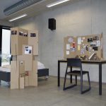 An email or a brochure with information is received by the international students, in which there is also a link to the drawings of the objects. The student will get familiar with the drawings and finds that they want to create the solution. Maybe they know where to find the cardboard boxes or uses the Internet and / or connections to find the necessary material and tools. This step will help to feel included in a new society. The student will arrive at home with materials and starts to making the objects. Due to the simplicity of the drawings, the process is enjoyable and students start to feel a lot more at home in their new home. Self-made things are their own and have absolutly no restrictions. During their studies, the students’ memories cumulate on these objects via collected pictures and things. Organising these items to the board and dividor gives the student the opportunity to territorise their space in addition to personalization and privacy. After studies, both the board and the dividor can be thrown into recycling or gift it on.