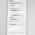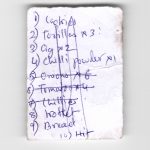 I’ve been collecting found shopping lists since 2015. I currently hold over eighty of them. My graduation work consists of a two-part work and an artist’s book, both of which have the same title Columns, Stacks and Keepsakes and are based on the gathered material.