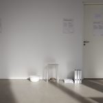 The work encompasses three components that indicate whiteness, emptiness and cleanliness in the space and artist’s life.