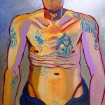 My Bachelor’s Thesis is based on my stepfather’s biography and consists of two parts, which are paintings and textual material. Additionally, photos of my stepfather’s tattoos and a handmade amulette depicting human skulls is also presented at the exhibition. The main themes of the Thesis are life in Estonian prisons during the eighties and nineties along with a person’s change for the better. Eventually he moves on from his criminal past and starts a new life. The textual part of the Thesis was copleted before everything else — it came to be as my stepfather and I sat behind our kitchen table and I asked him to talk in detail about his past life while I wrote everything down. The paintings, on the other hand, show scenes from his current day-to-day life.