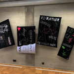 Creation without restriction tickles my consciousness more and more, encouraging me to break the rules and play with structure, form or medium. All Stitched Up is a five-part installation that stems from a study of the use of alternative mediums, punk mentality as well experimentation in graphic design using fabric, its form, and stitches to create graphics while connecting the two worlds that interest me personally. After reading various articles and interviews about punk in graphic design, designer David Carson and artist Jamie Reid, I collected quotes which rebellious undertones are connected with a certain element – Carson’s attitude to using the grid,