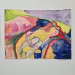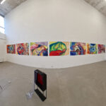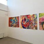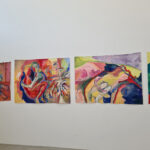 Lõuendiriie on riputatud seinale narmendununa ja sellel on näha voltimisjooned nende transpordist nende loomepaigast galeriiruumi. See veelkordselt kinnistab minu jaoks nende maalide elusolekut – nad pole staatilised ning silutud, vaid robustsed oma presentatsioonis, ebatasased nagu elu ise.