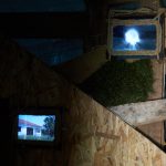 - installatsioon, leitud materjal, klaas, kile, koormakate, 9 videot (6 ekraanil), heli
